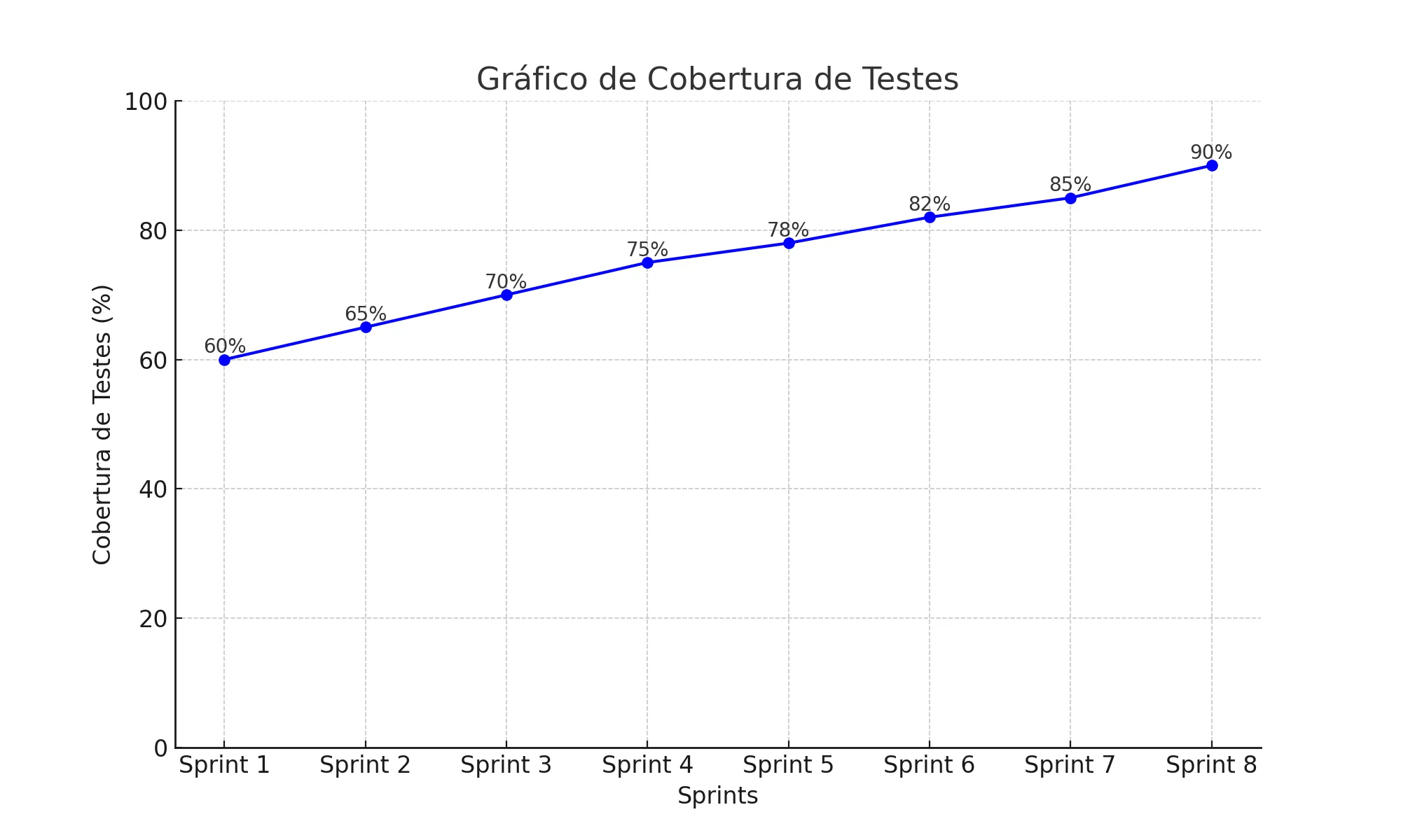 Indica a porcentagem de código ou funcionalidades testadas automaticamente. Alta cobertura de testes está associada a uma redução no número de bugs encontrados em produção.