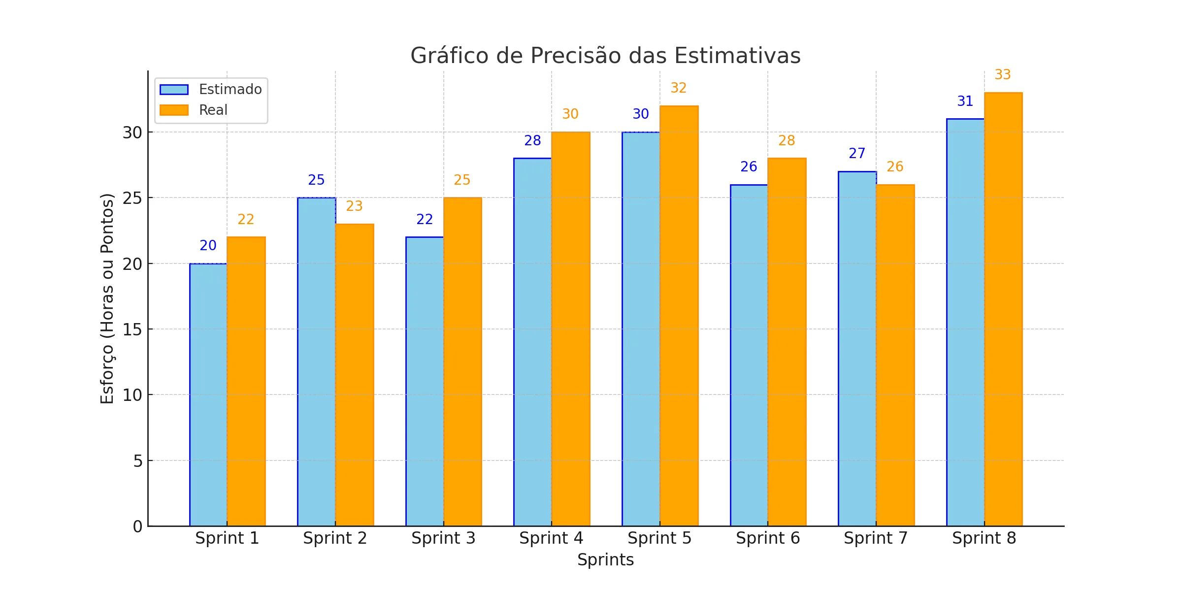 Comparar as estimativas iniciais de esforço com o tempo real gasto pode fornecer insights sobre a precisão das estimativas da equipe.