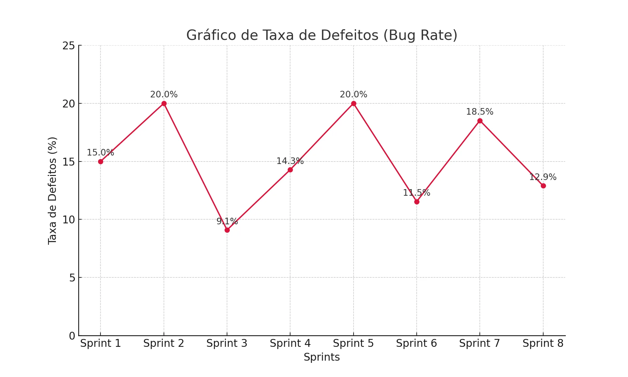 Mede a quantidade de defeitos encontrados em uma determinada quantidade de código ou funcionalidade entregue. Um baixo bug rate geralmente indica maior qualidade do produto.