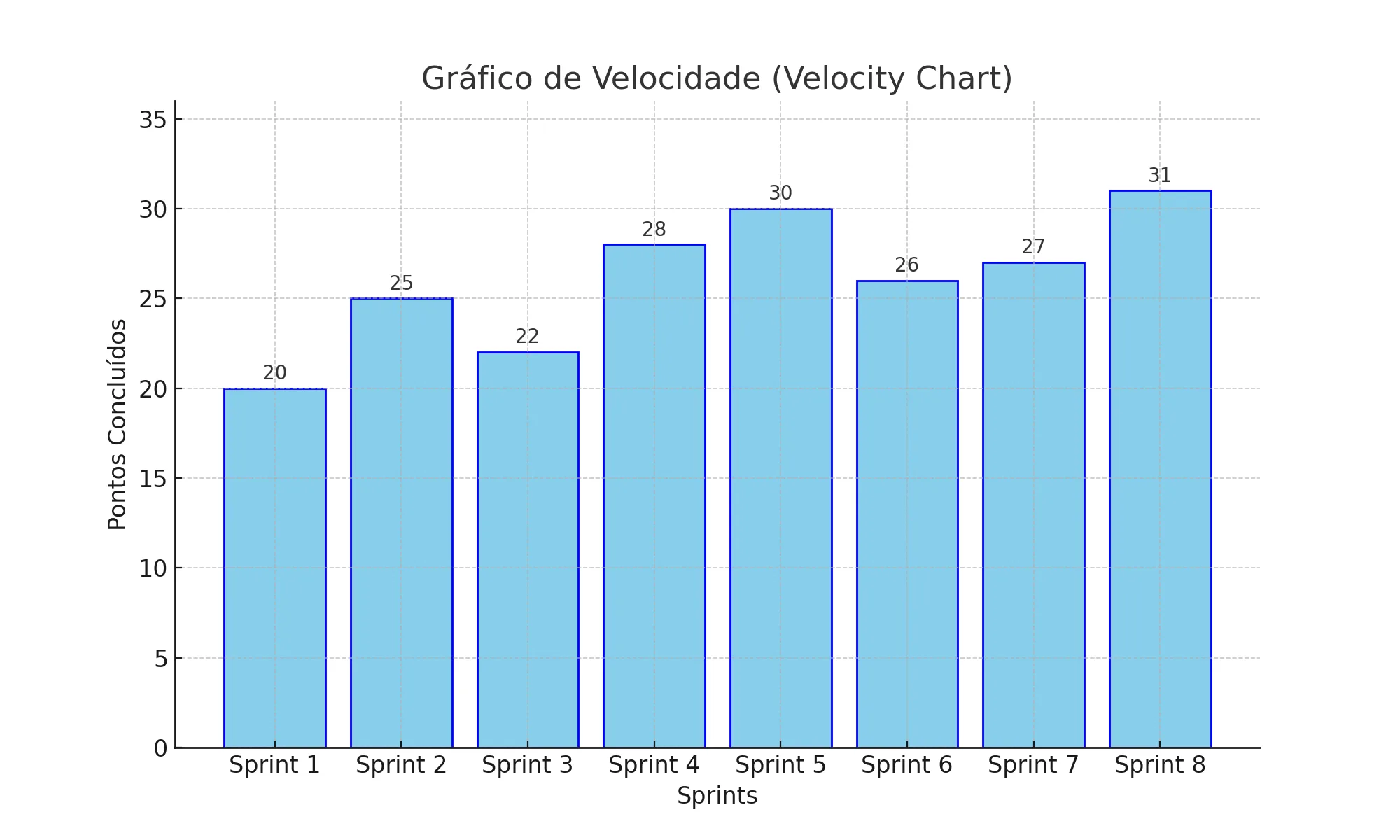 É uma medida da quantidade de trabalho que uma equipe pode completar em um determinado período, geralmente em pontos de história para equipes Scrum. Acompanhar a velocidade ajuda a prever quanto trabalho a equipe pode realizar em futuras iterações.