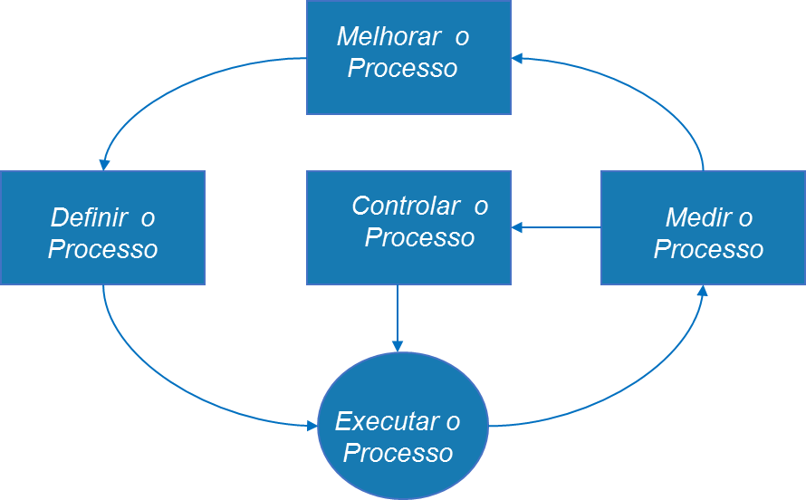 Outro conceito importante e que ajuda a empresa a evoluir e garantir que seus processos apoiem seus objetivos de negócio é o de Melhoria Contínua, a figura abaixo representa a estrutura de Florac e Carleton, 1999.